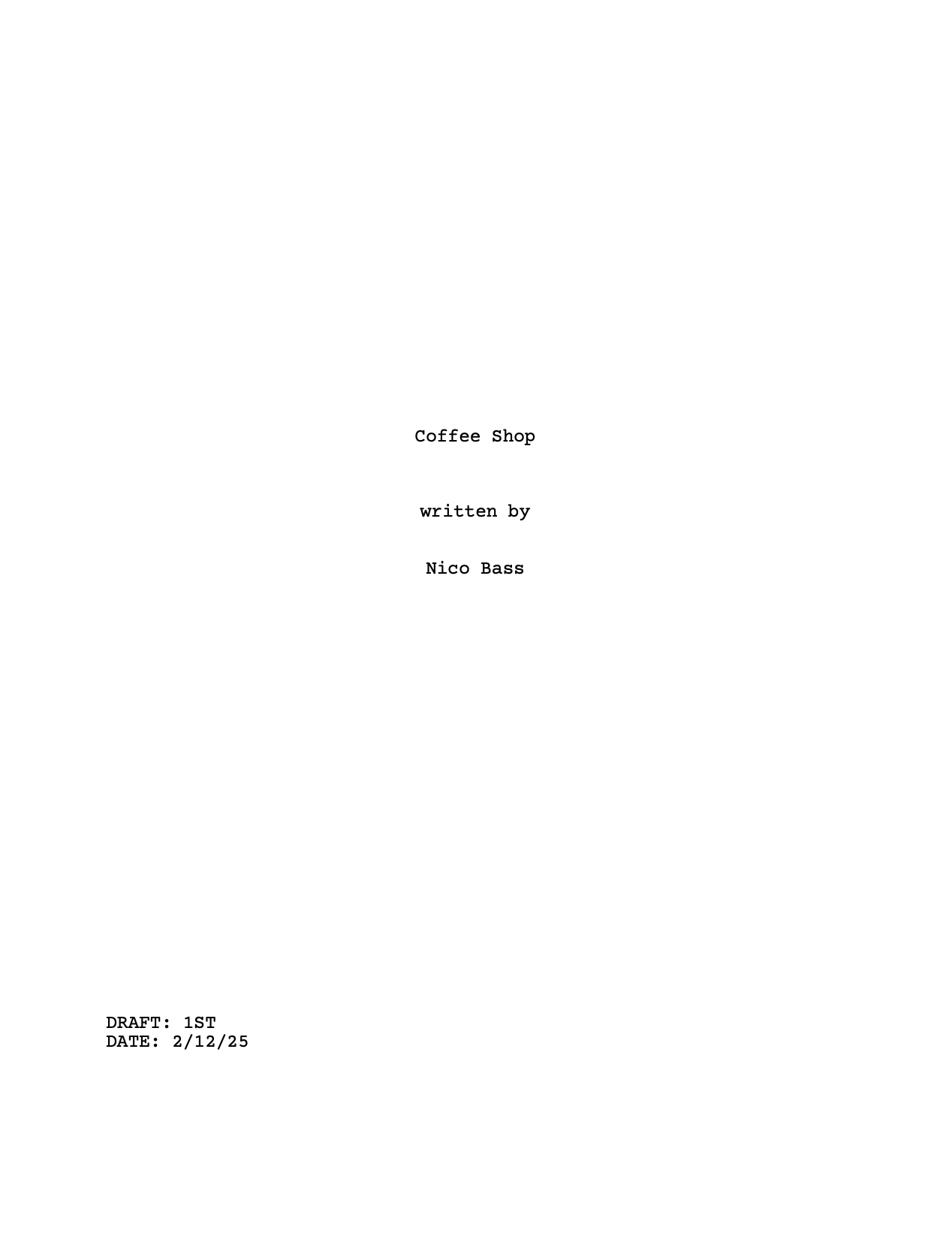 Dramatic and poignant short about two friends who reconnect for the first time in a long time at a coffee shop. Click on the document, or click here to read.